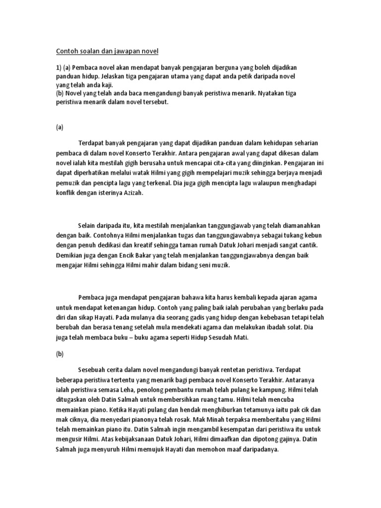 Contoh Jawapan Soalan Novel Spm Berdasarkan Soalan Pdf
